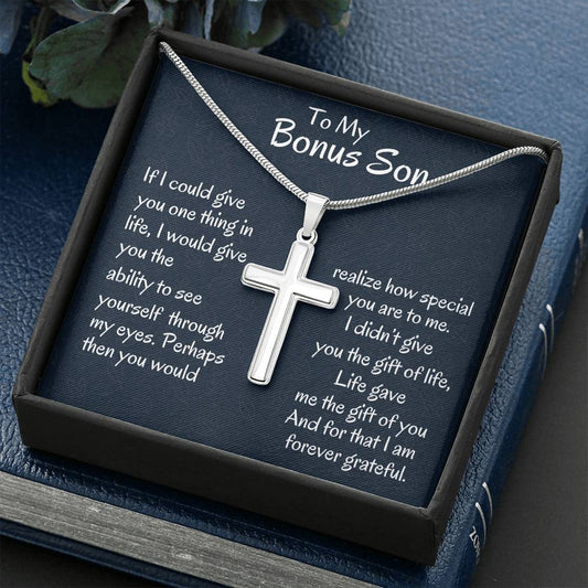 Stepson Cross Necklace Gift, Bonus Son Gift, Birthday Gift, Stepmom Present for Stepson Son In Law