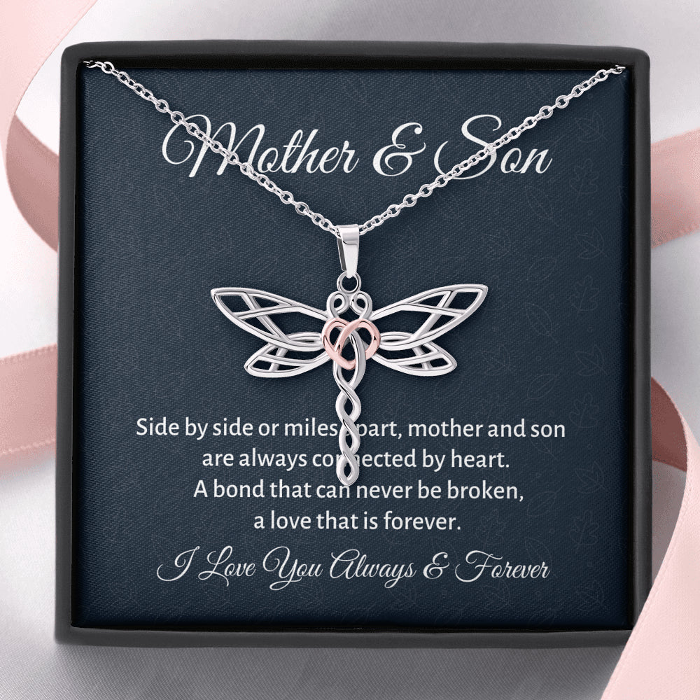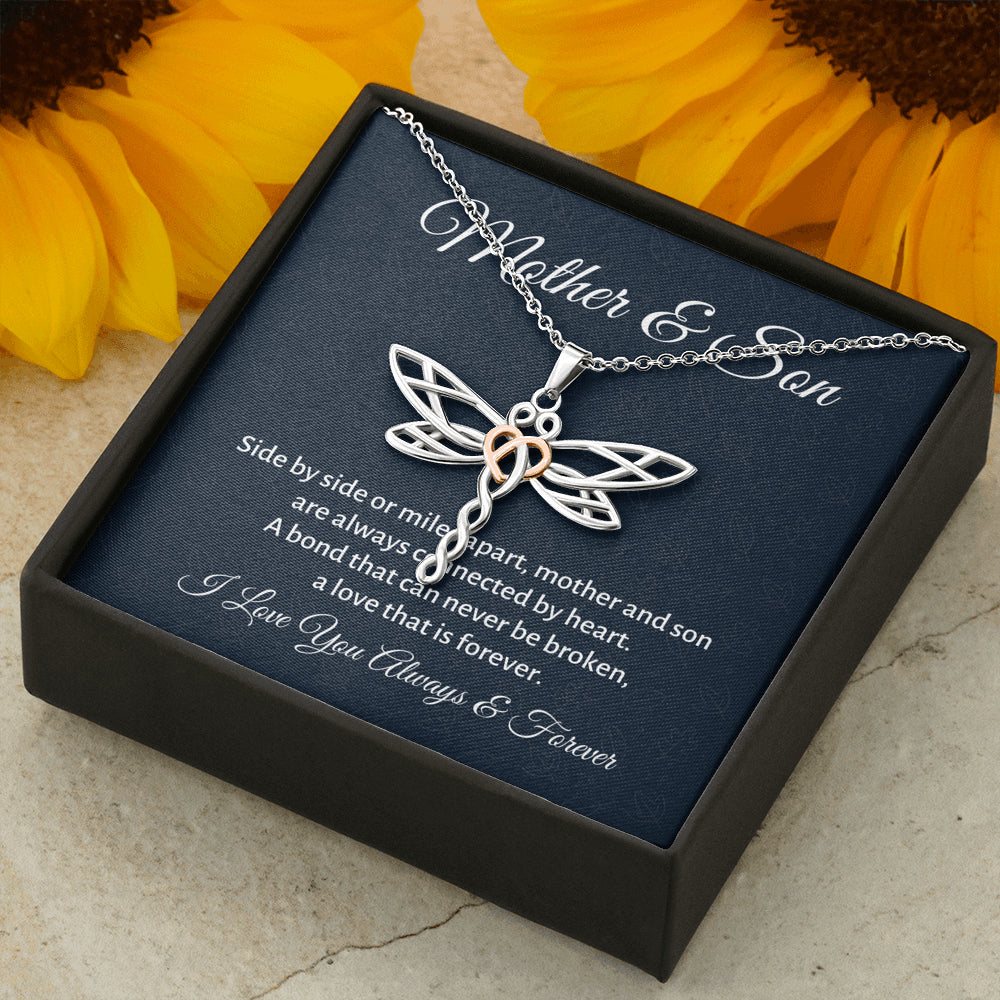 Mother & Son Dragonfly Necklace Gift, Mom Birthday Gift or Christmas Present from Son, To Parents Appreciation Gift