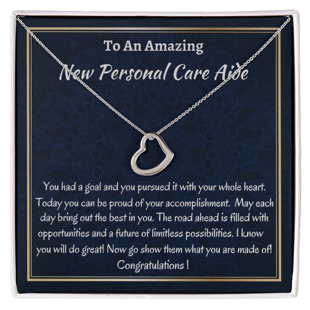 To An Amazing New Personal Care Aide Delicate Heart Necklace, New Personal Care Aide Gift, Appreciation Jewelry Gift, Meaningful Gift, Unique Jewelry Gift,