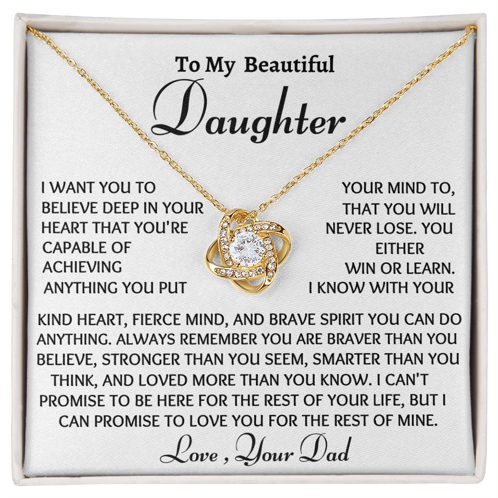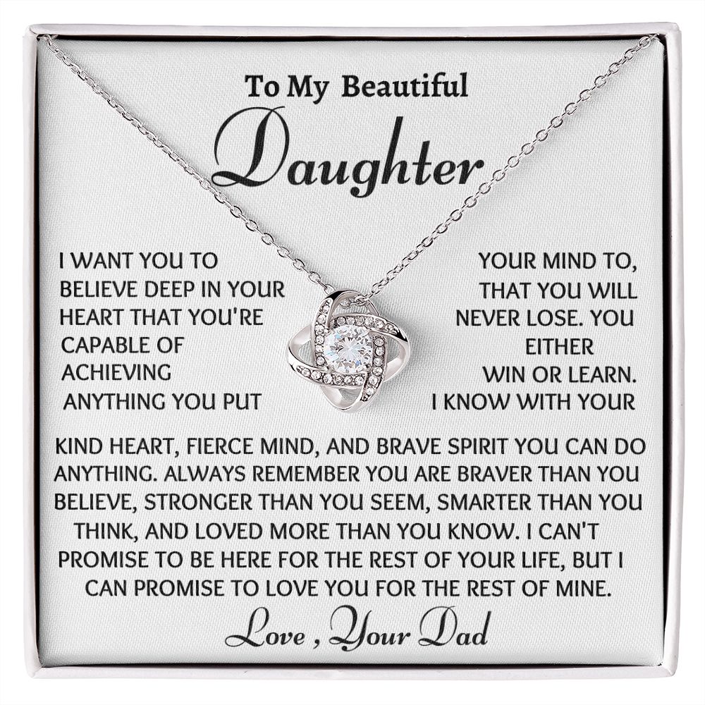 To My Daughter Love Knot Necklace, Birthday Gift From Dad, Christmas Gift For Her, Dad to Daughter Gift.